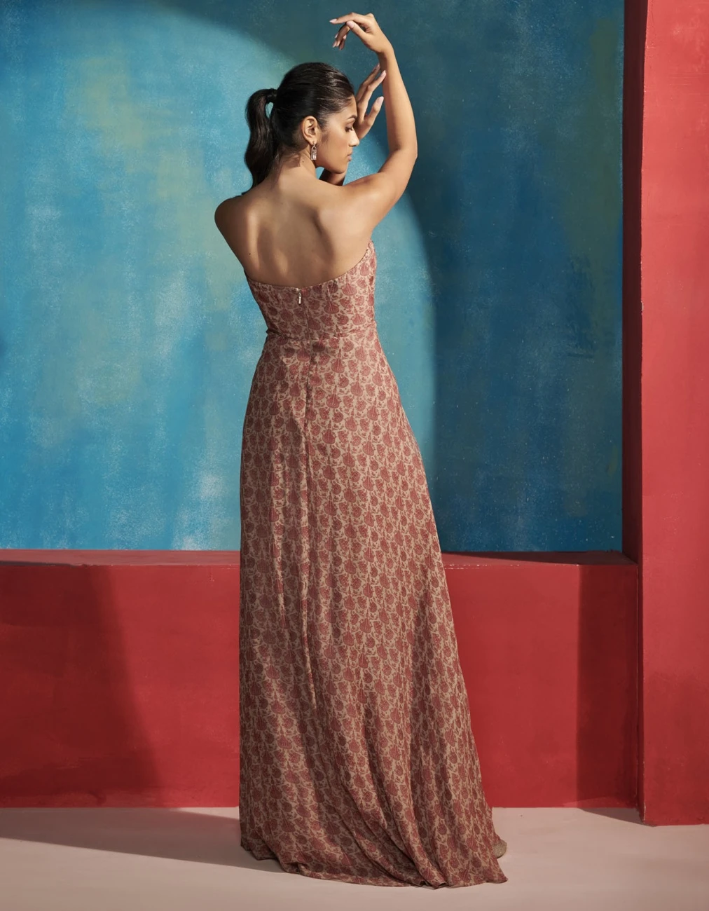 - Bohemian chiffon printed dress embellished with swarovski crystals