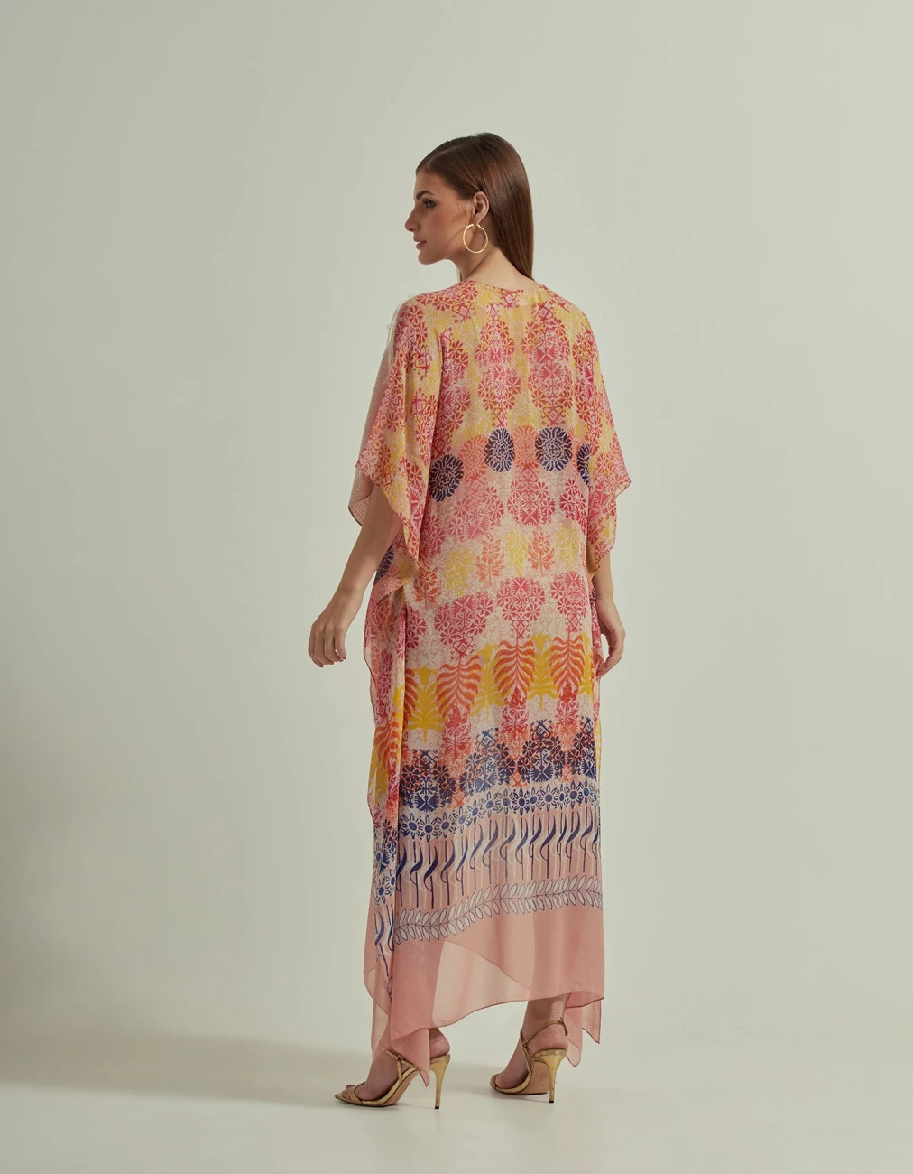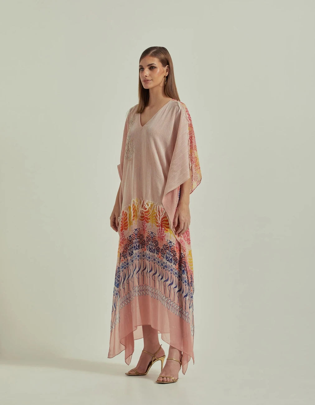 Amber Peach Half Texture And Printed Long Kaftan Dress