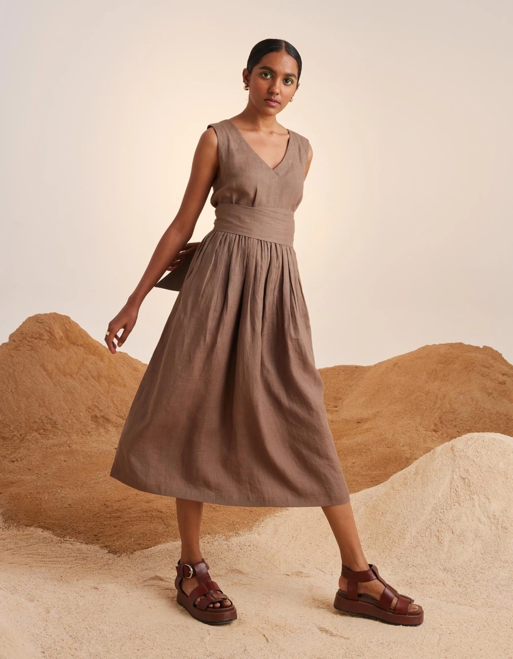 - This Sleeveless dress in Linen is designed to keep you comfy yet stylish
