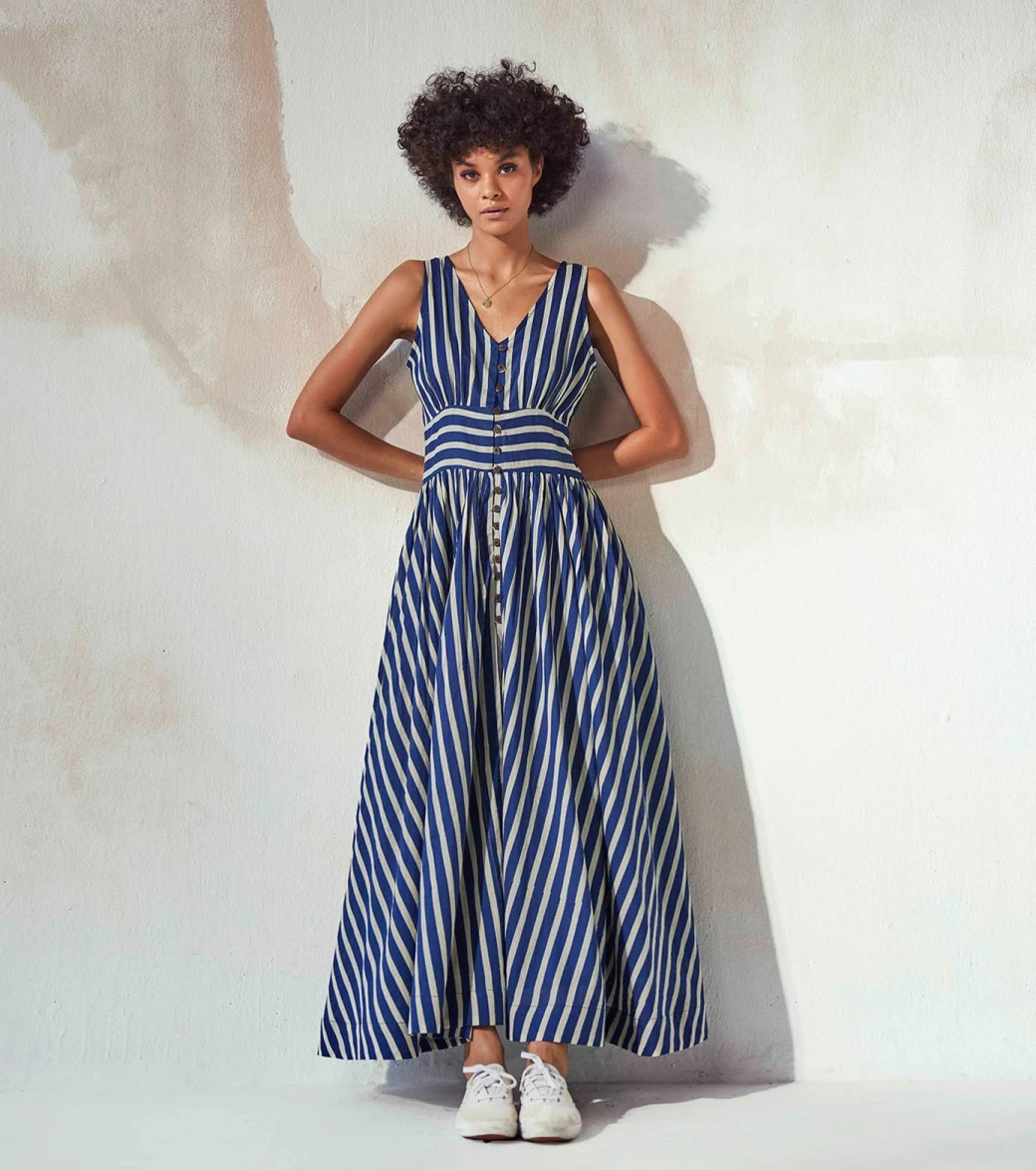 - A perfect stripe fit and flare summer dress with front button opening