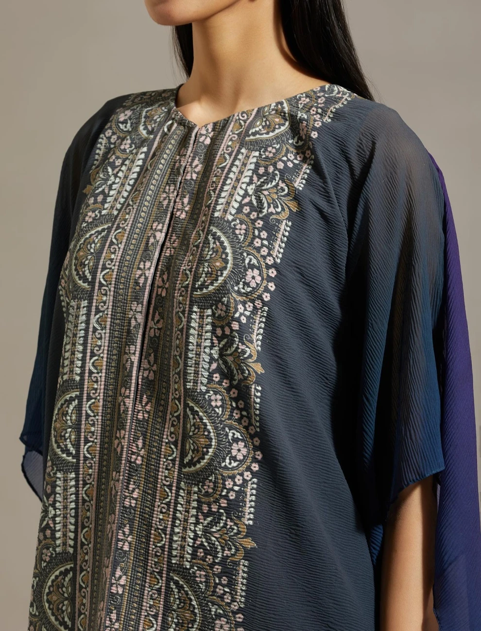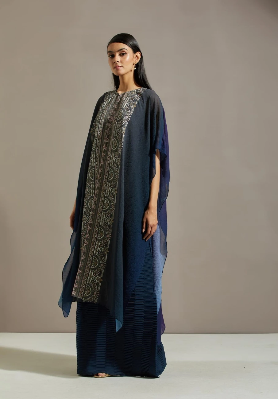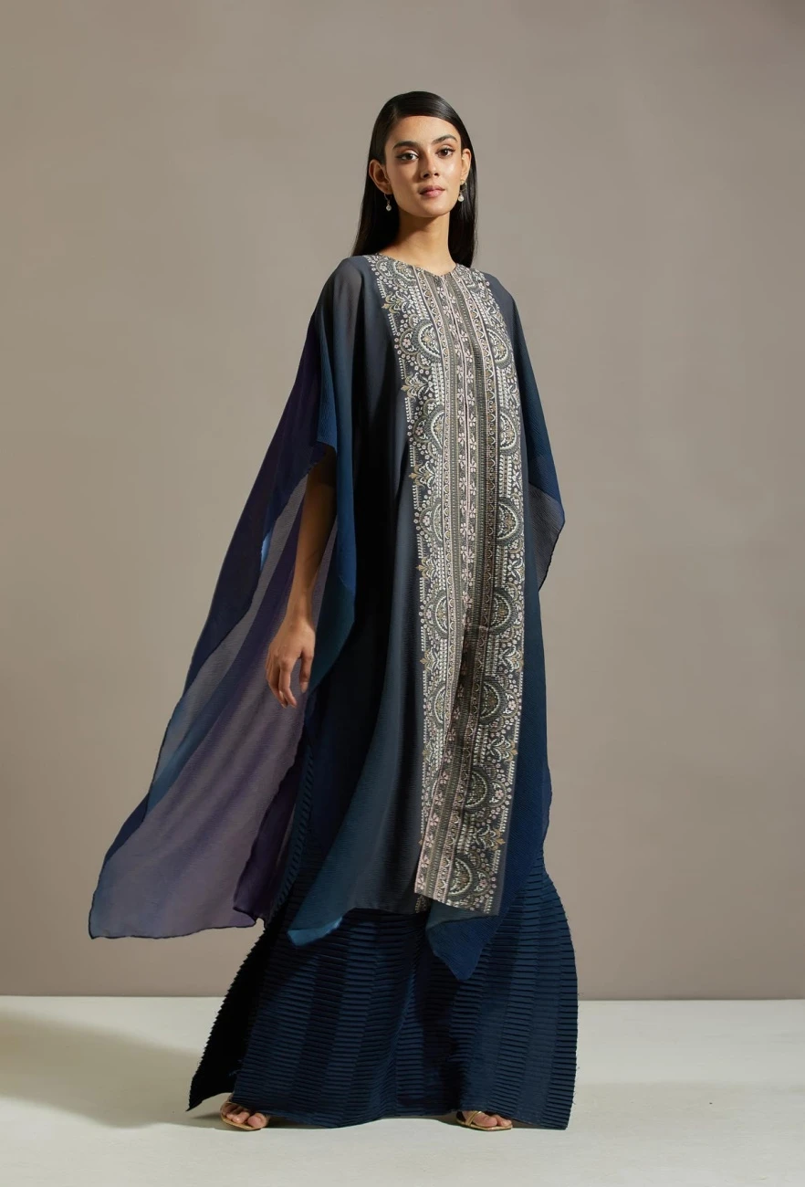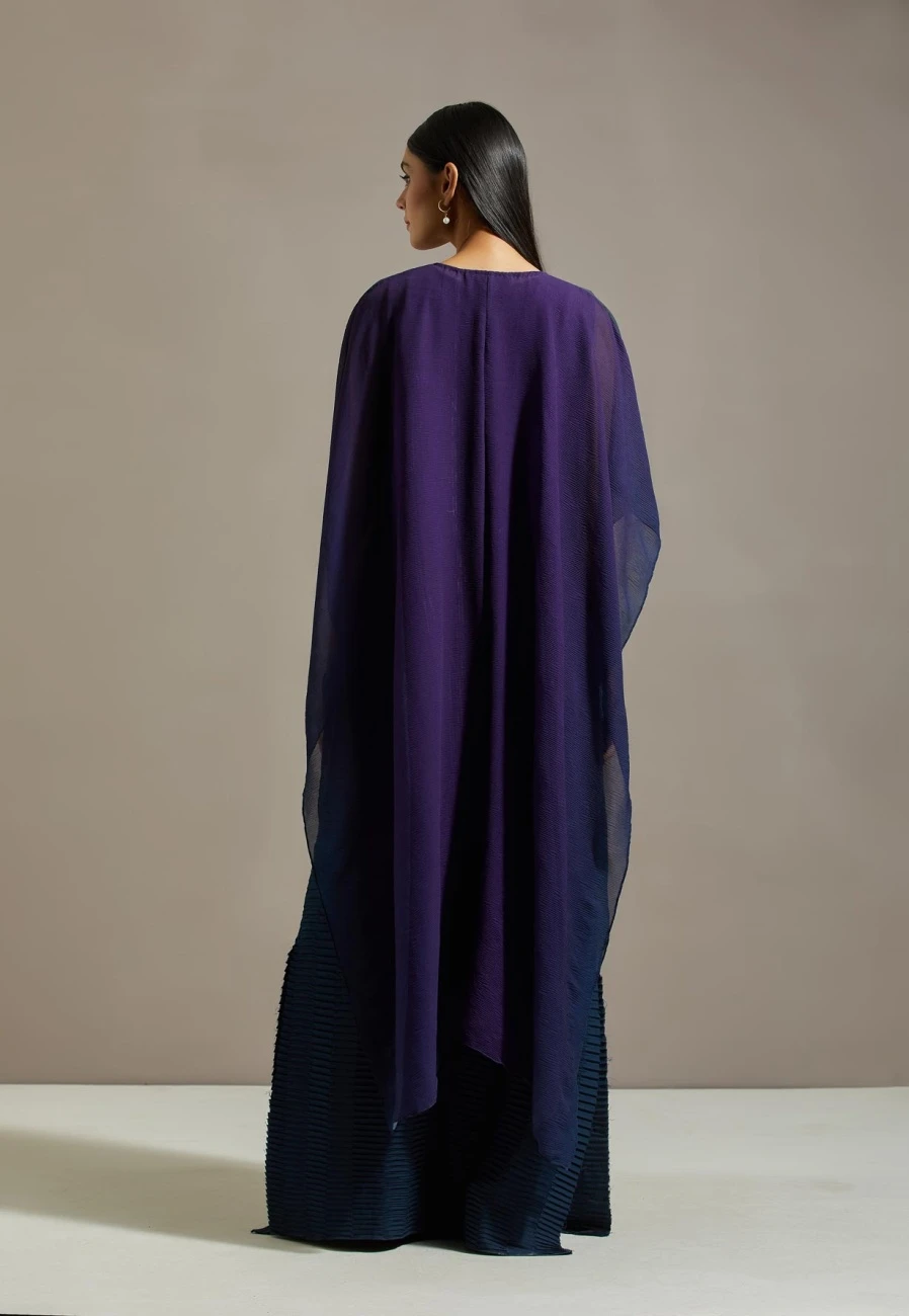 - Blue crinkle cape with dress