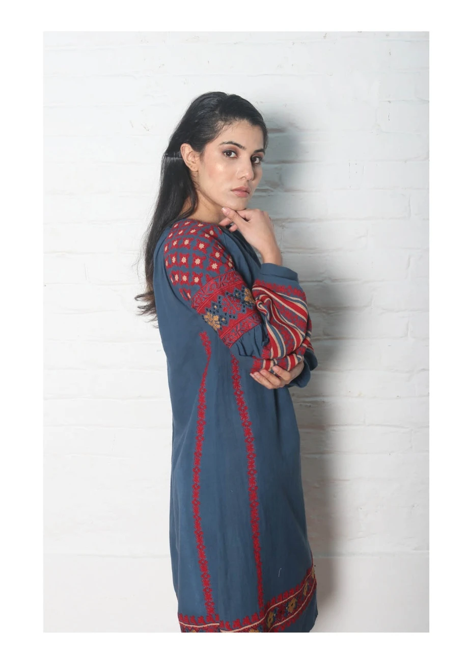 Meticulous cross-stitch embroidery and intricate European cutwork come together in Chandrimaโs beautiful contemporary pieces