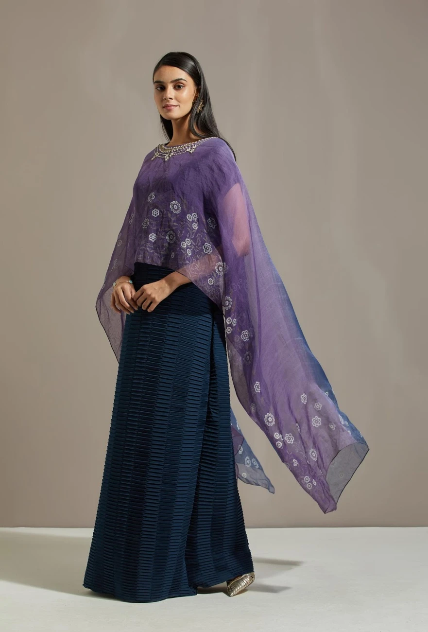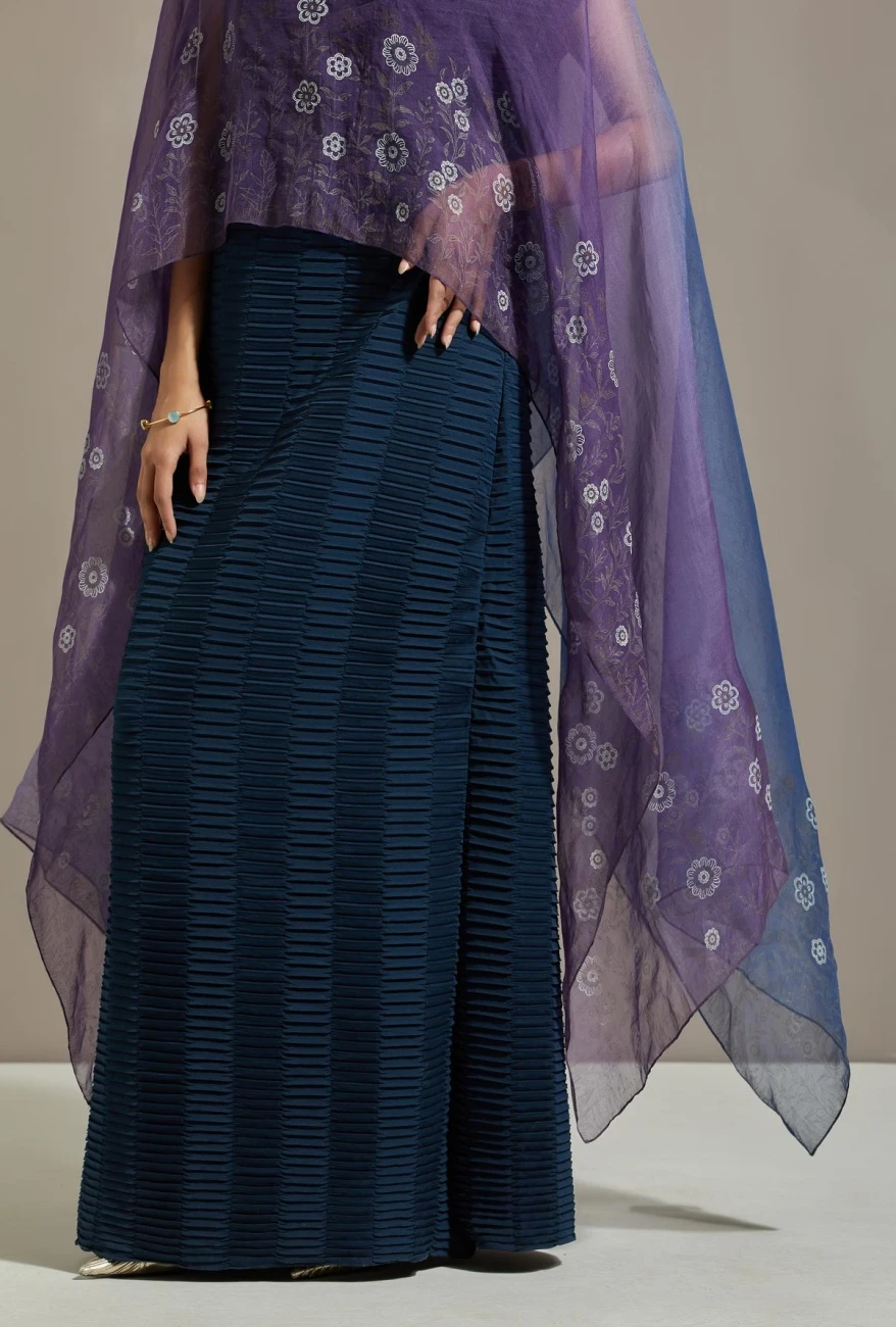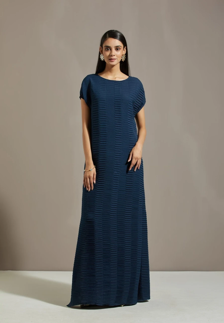 Salmon Pink Pleated Drape With Motif And Tassel Detail With Jersey Long Dress With Collar Detail
