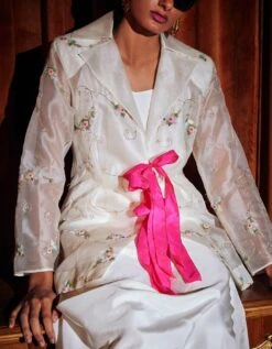 - The set features JG signature button knot details