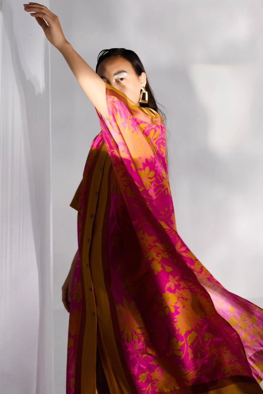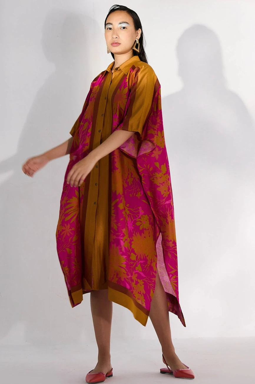 - Printed kaftaan shirt dress with side-slits