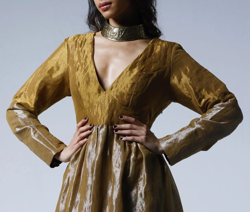 - Copper gold & silver maxi dress