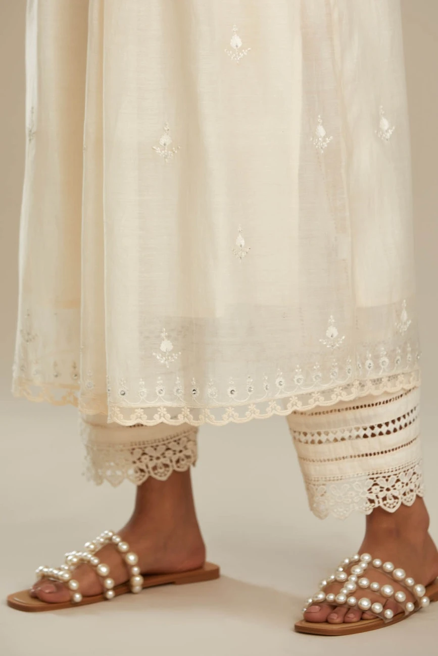 - Worn with a cotton : Slip, paired with off white cotton narrow salwar with assorted lace detailing