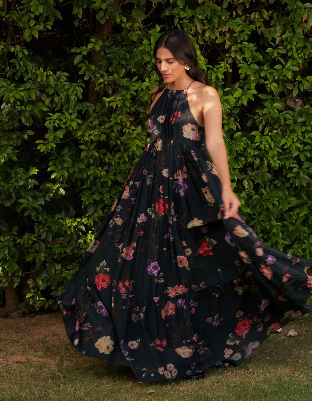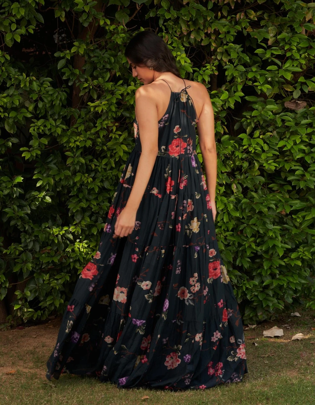 - Voluminous tier dress made in cotton silk to twirl