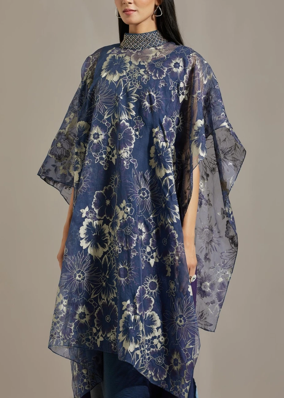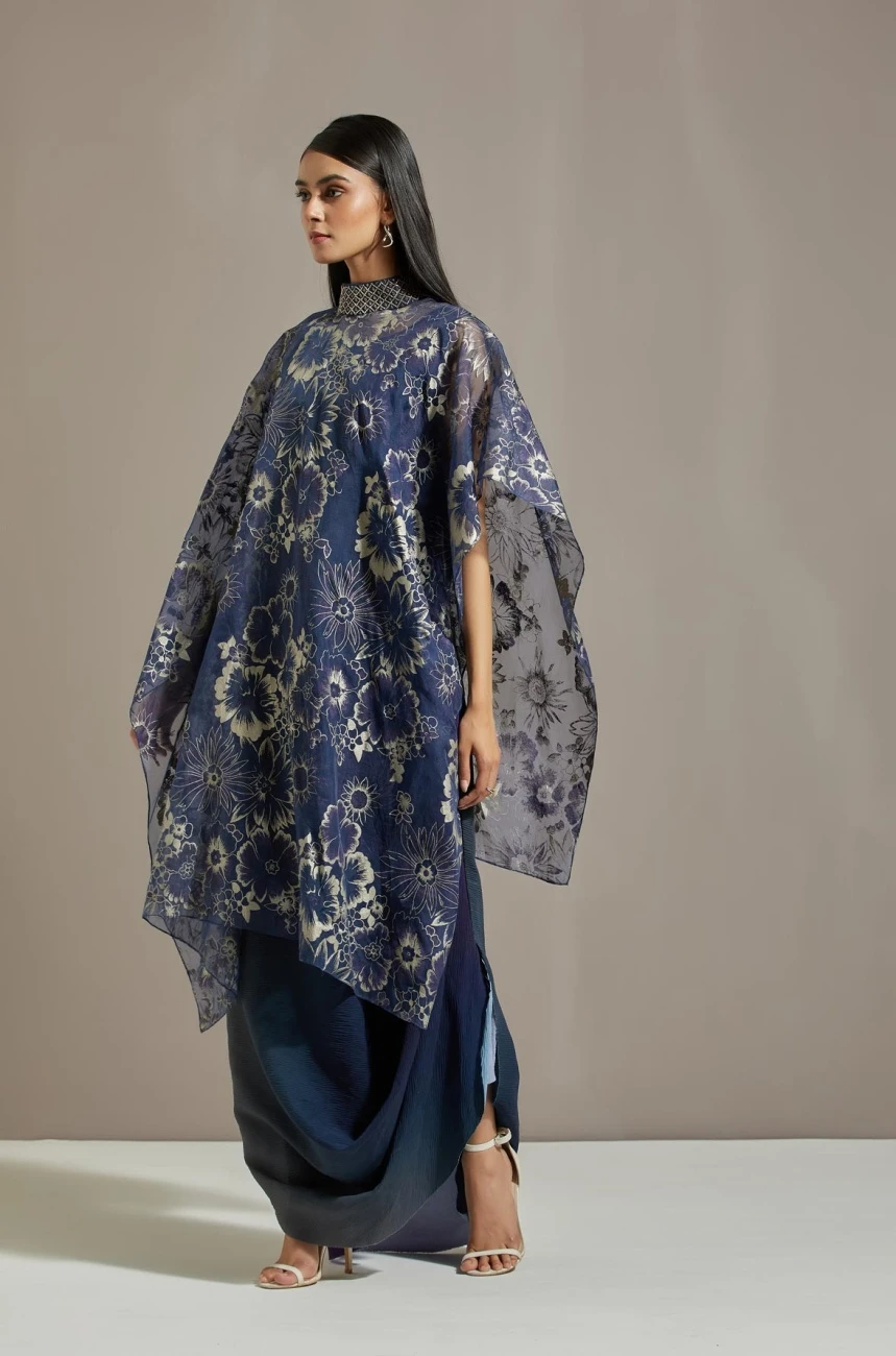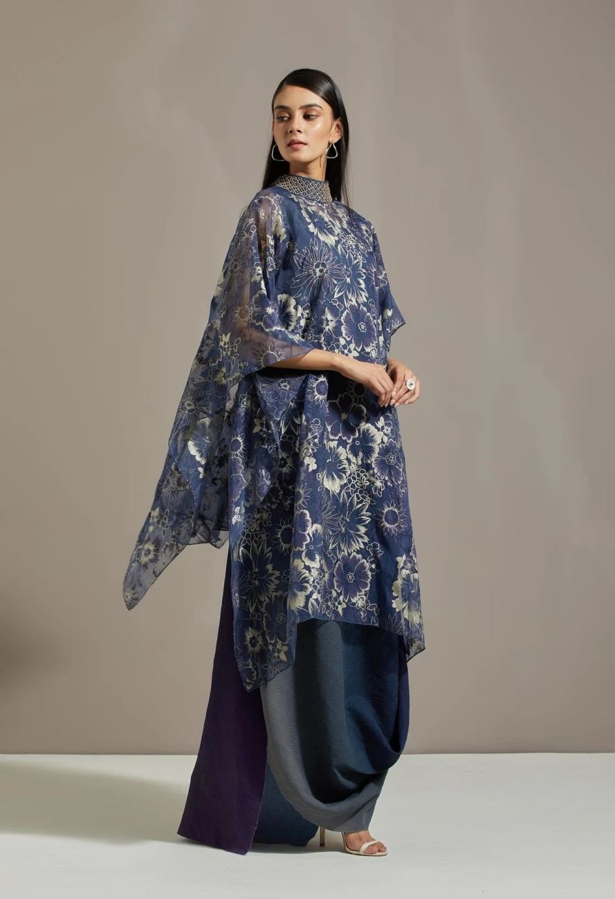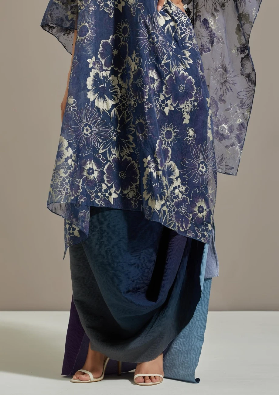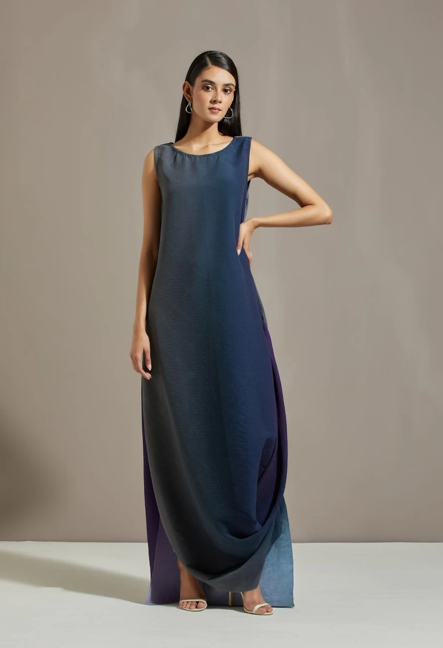 Salmon Pink Pleated Drape With Motif And Tassel Detail With Jersey Long Dress With Collar Detail