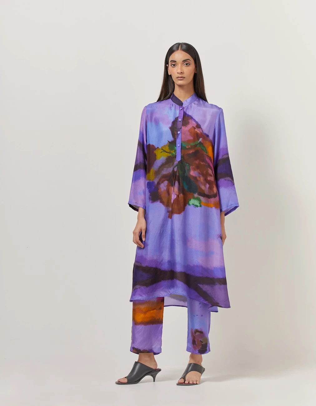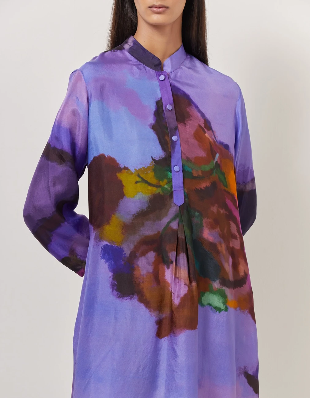 - Straight kurta with center pleat in purple hues of the food art story