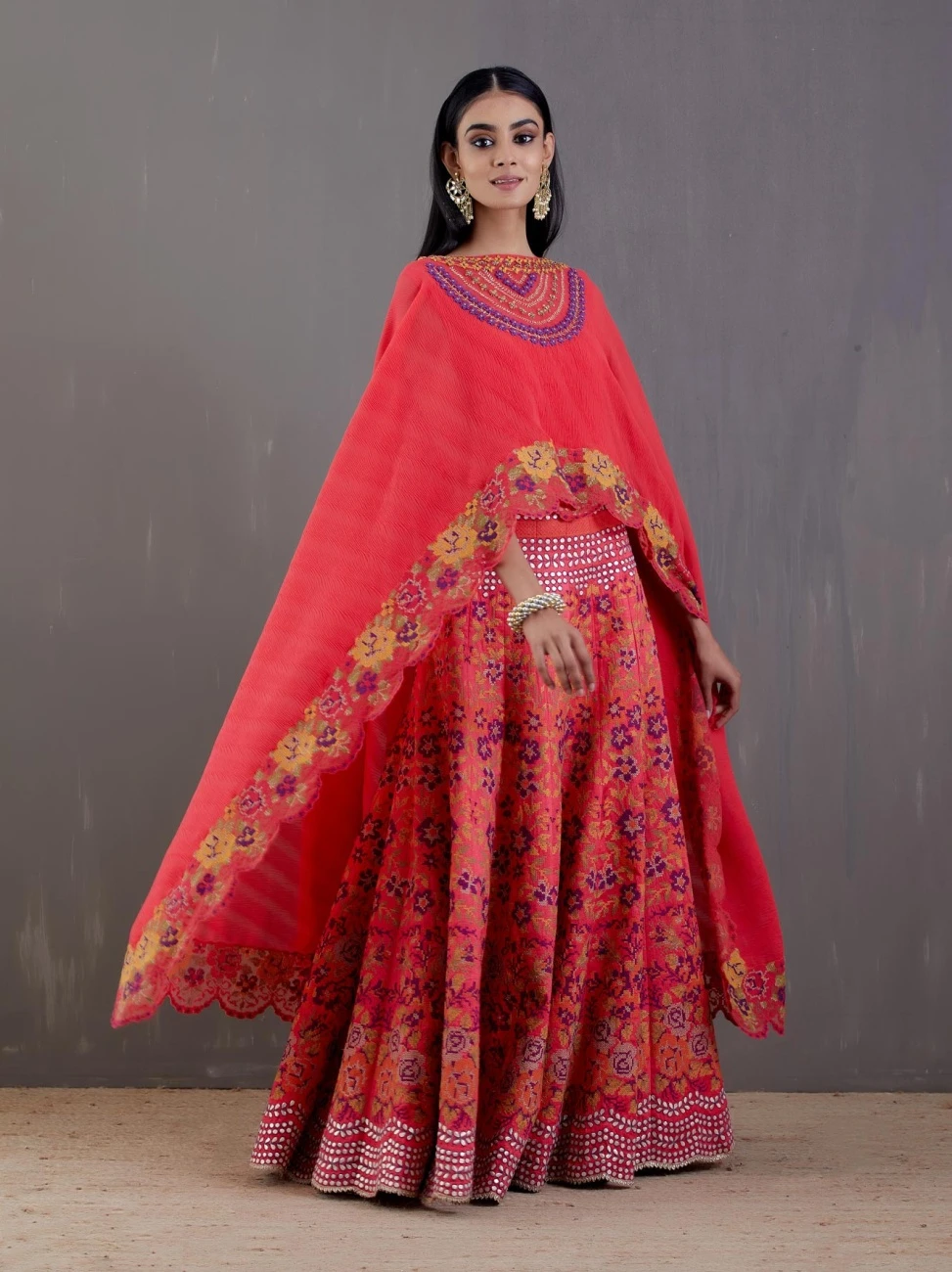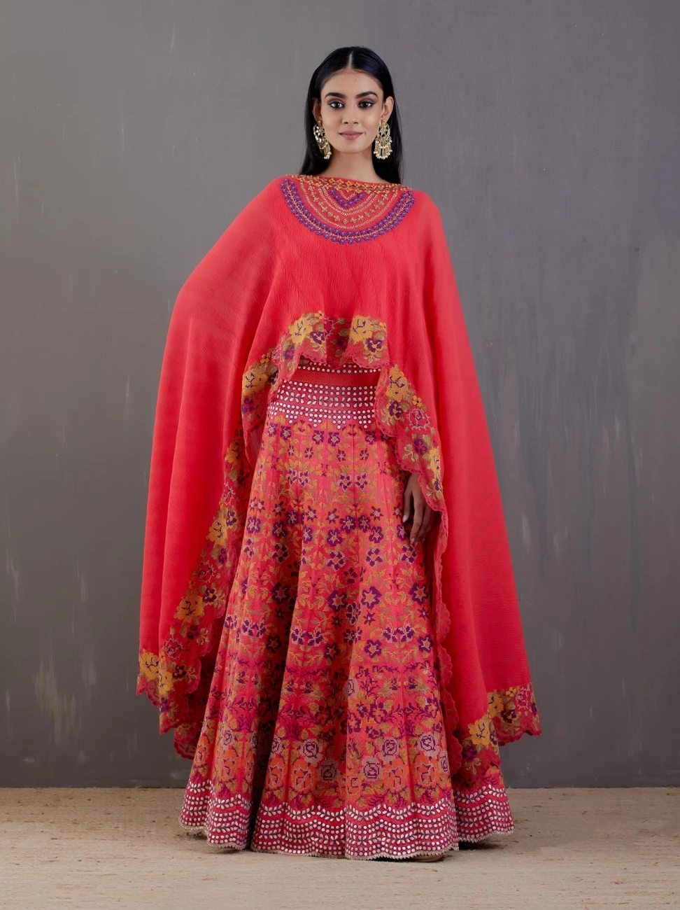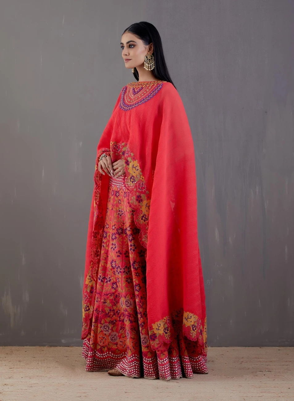 - Ferrari red crinkle georgette cape