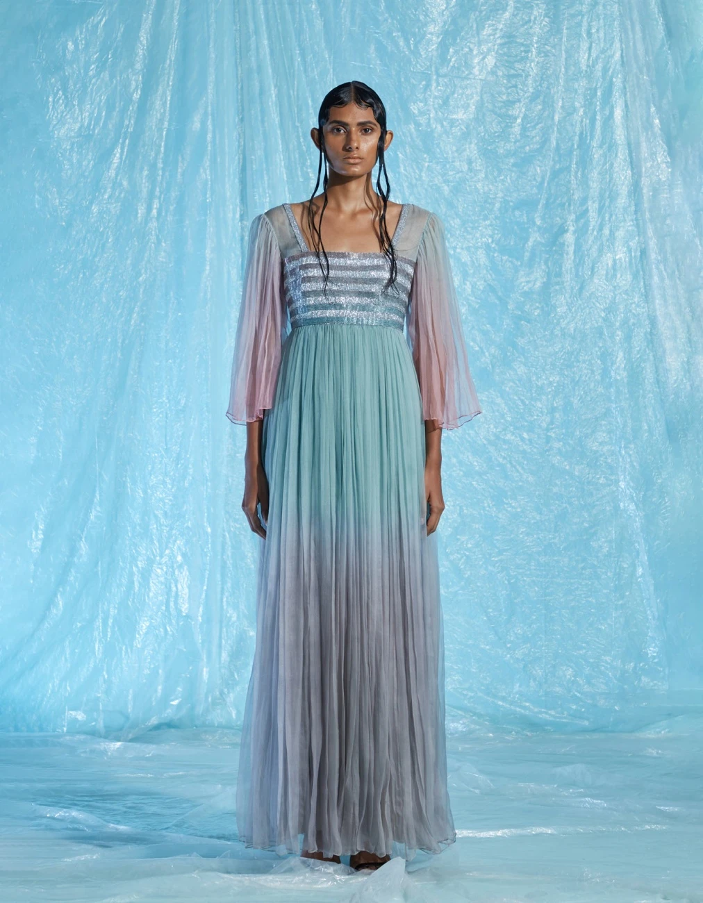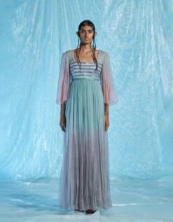 - Organza dress crafted in gathered and gradient-dyed organza with half sleeves