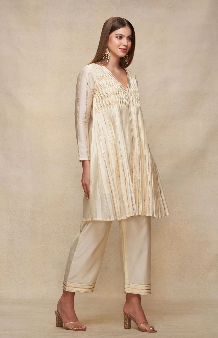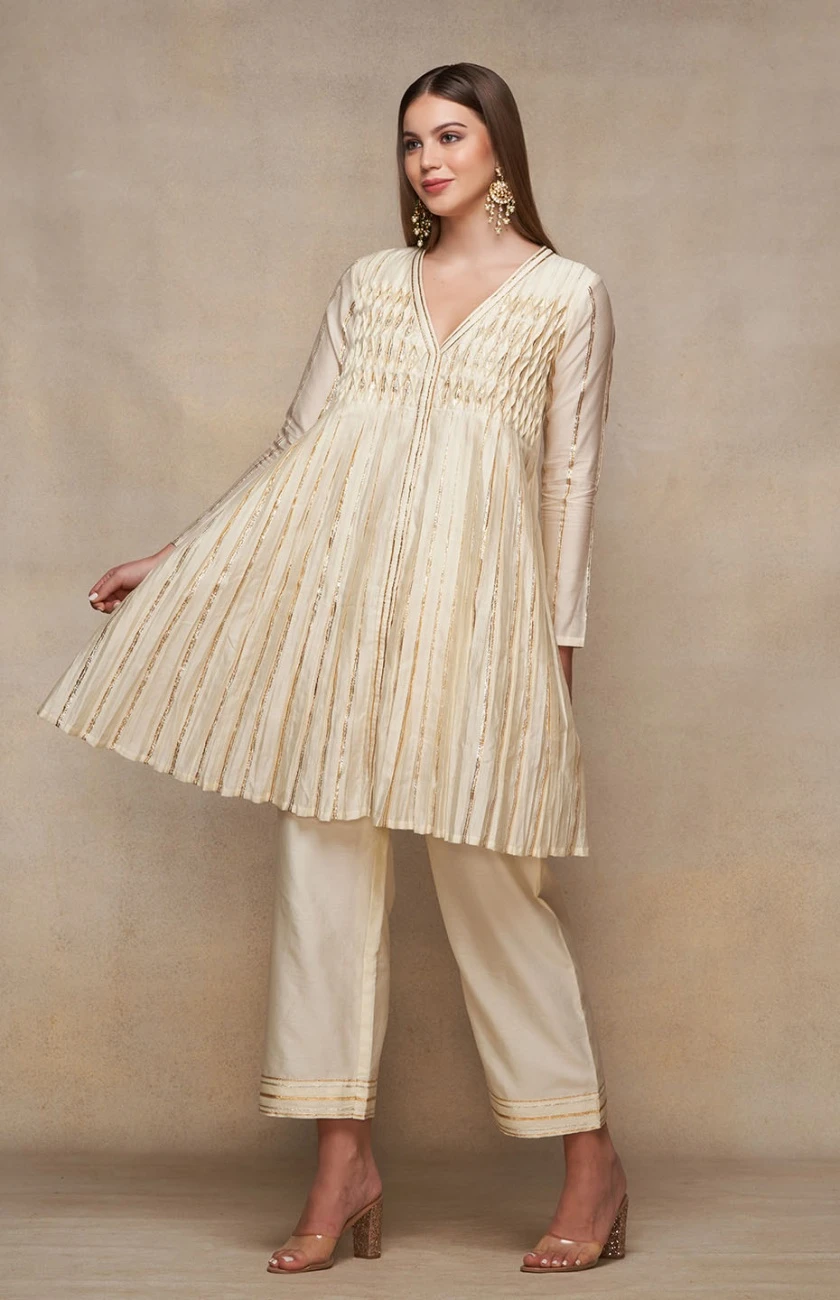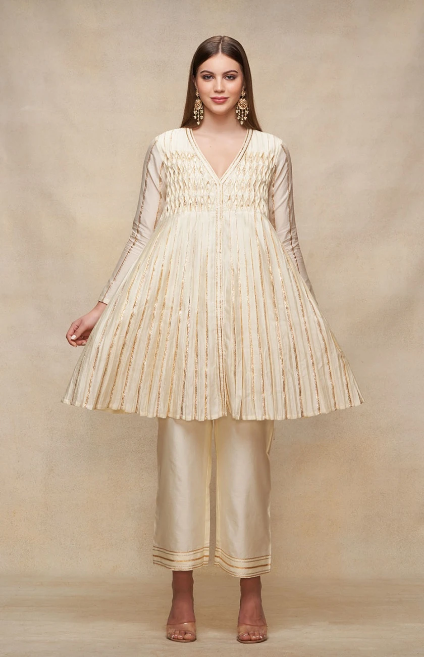 - Offwhite Open Gota Kurta Dress