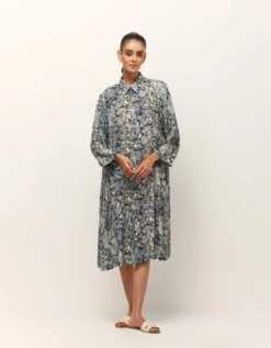 dress detailed with a front opening, light gathers in the
