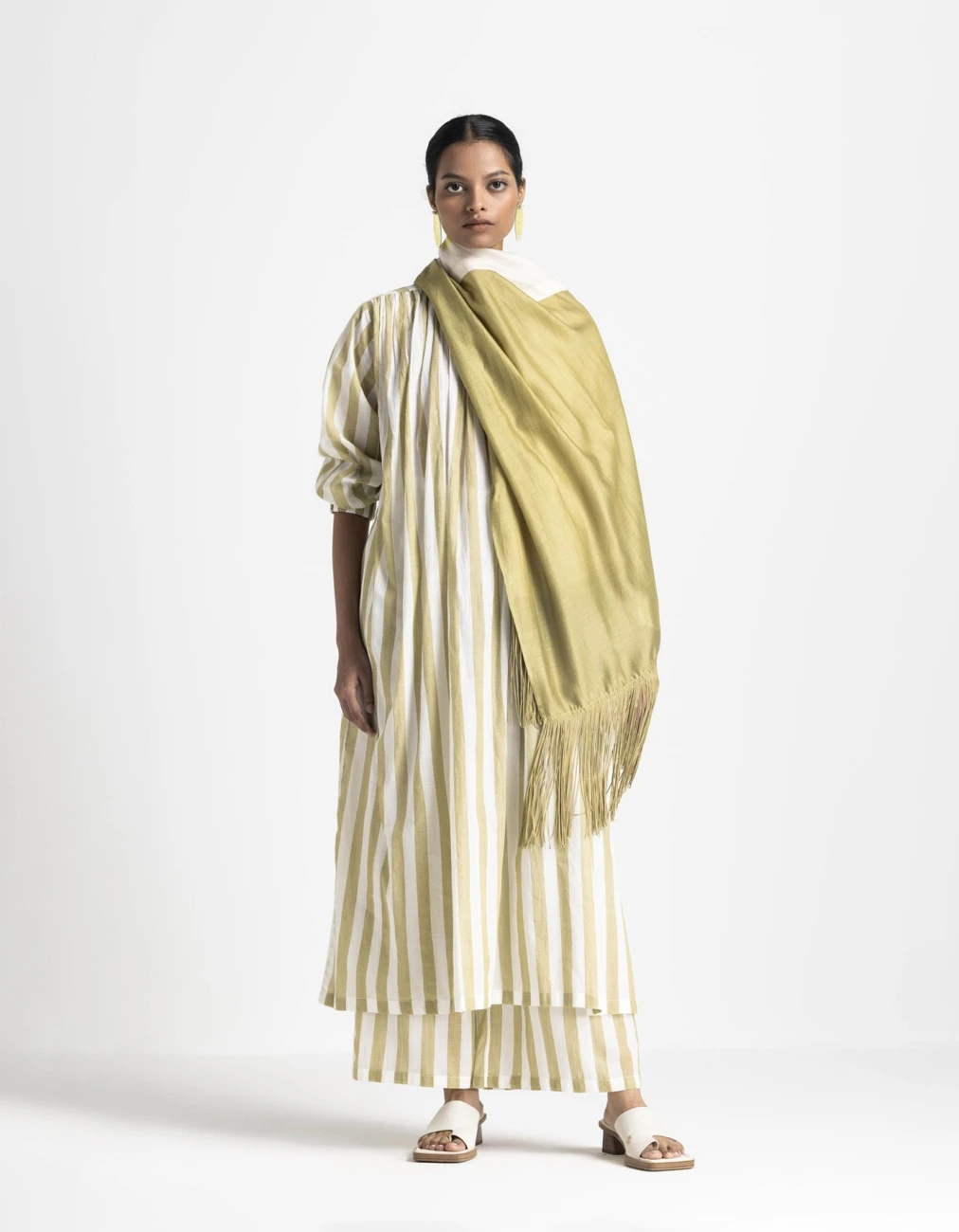 - Color – Dress : Moss Green Stripe, Bottom : Moss Green Stripe, Scarf : Moss Green
