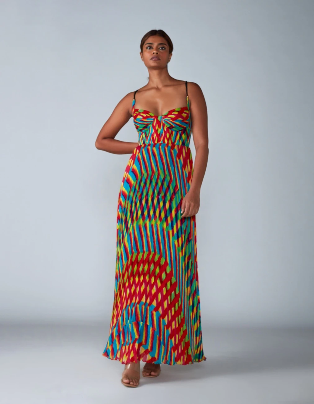 Multi Chiffon Pleated Maxi Dress