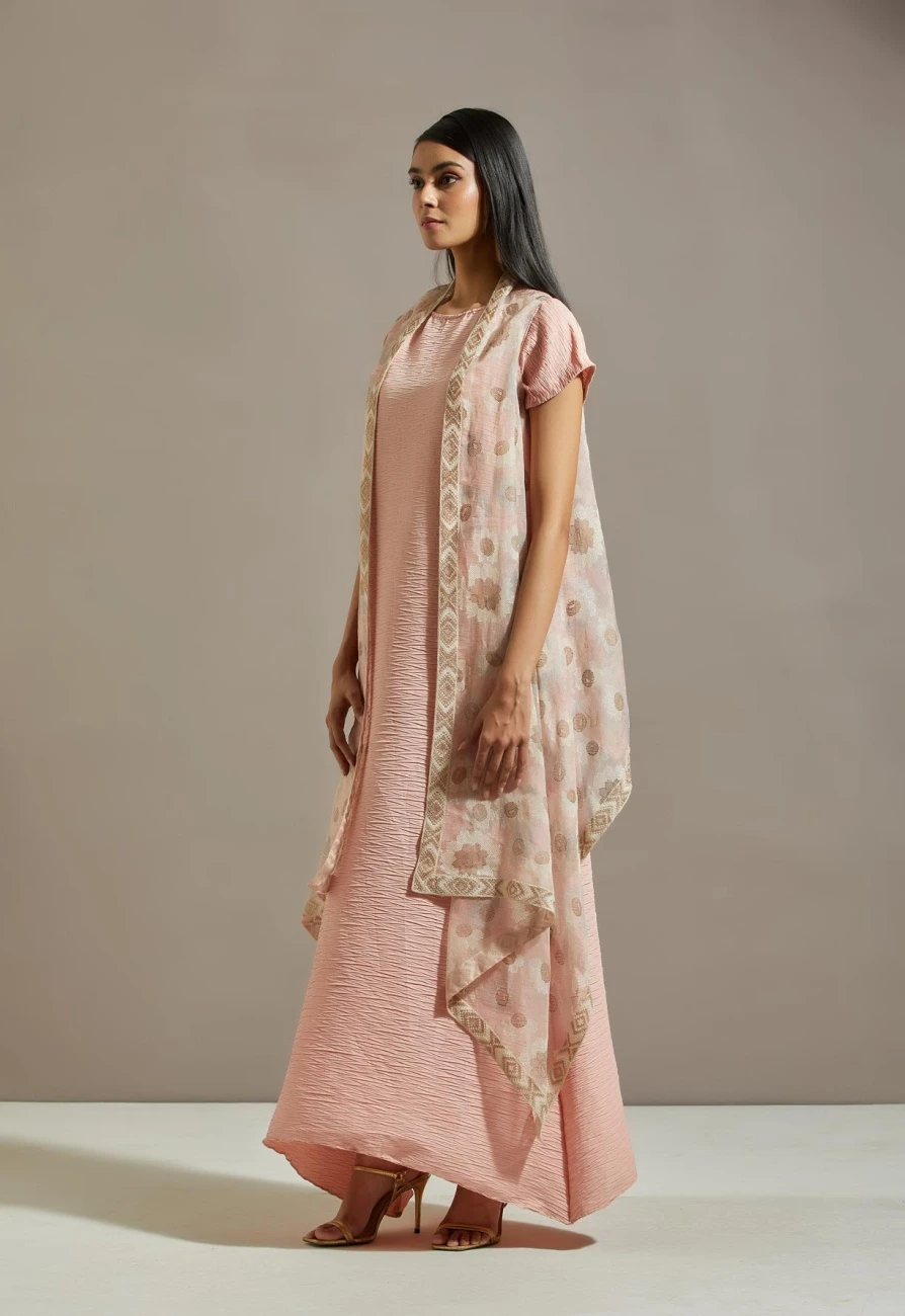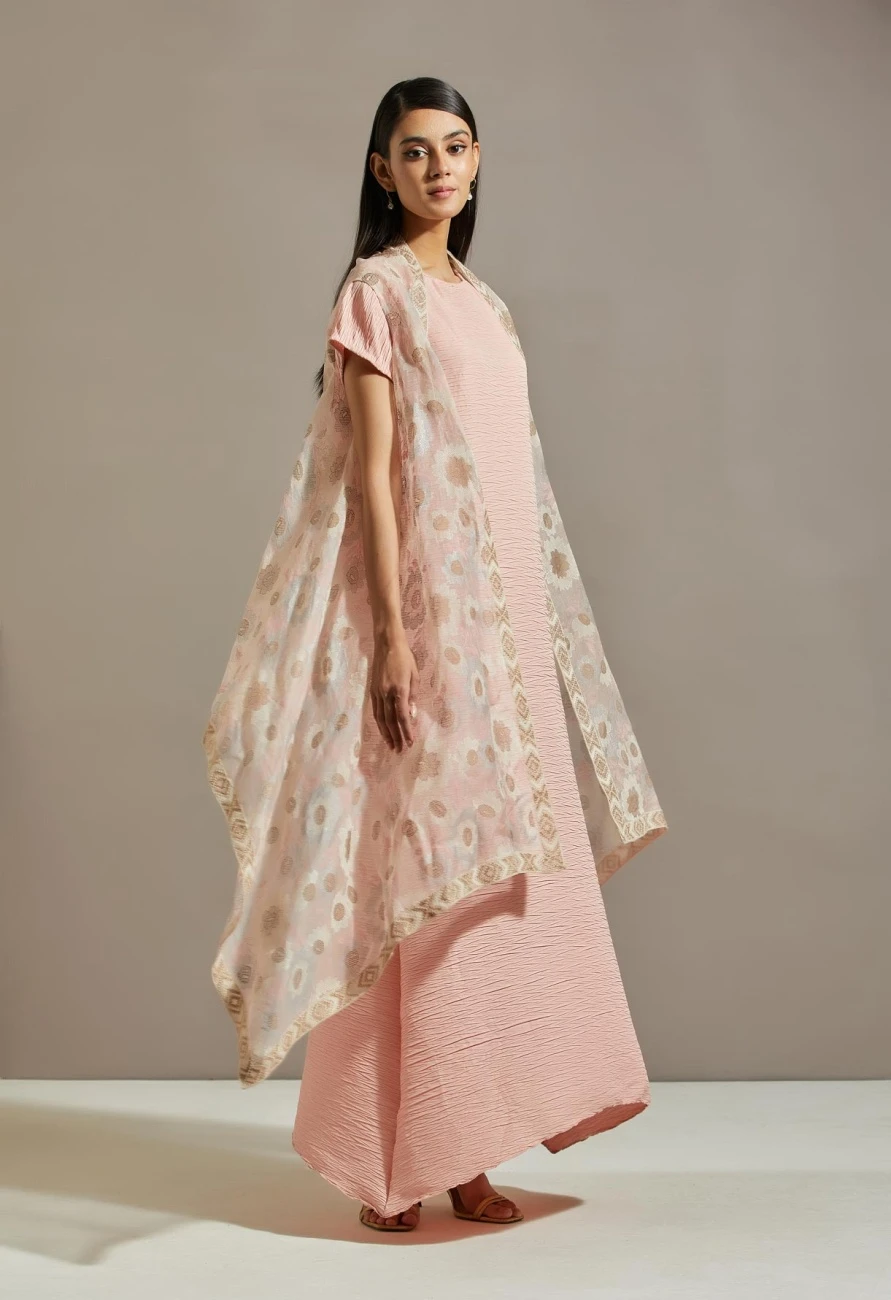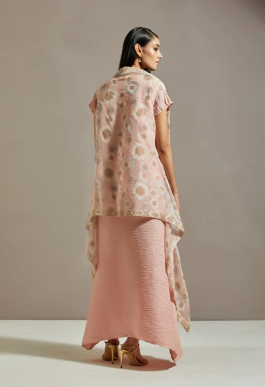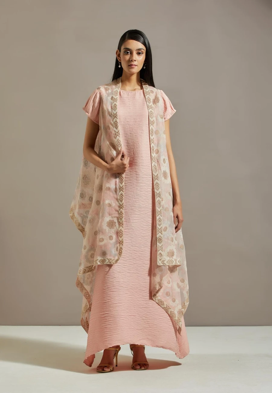 - Pink organza cape with dress