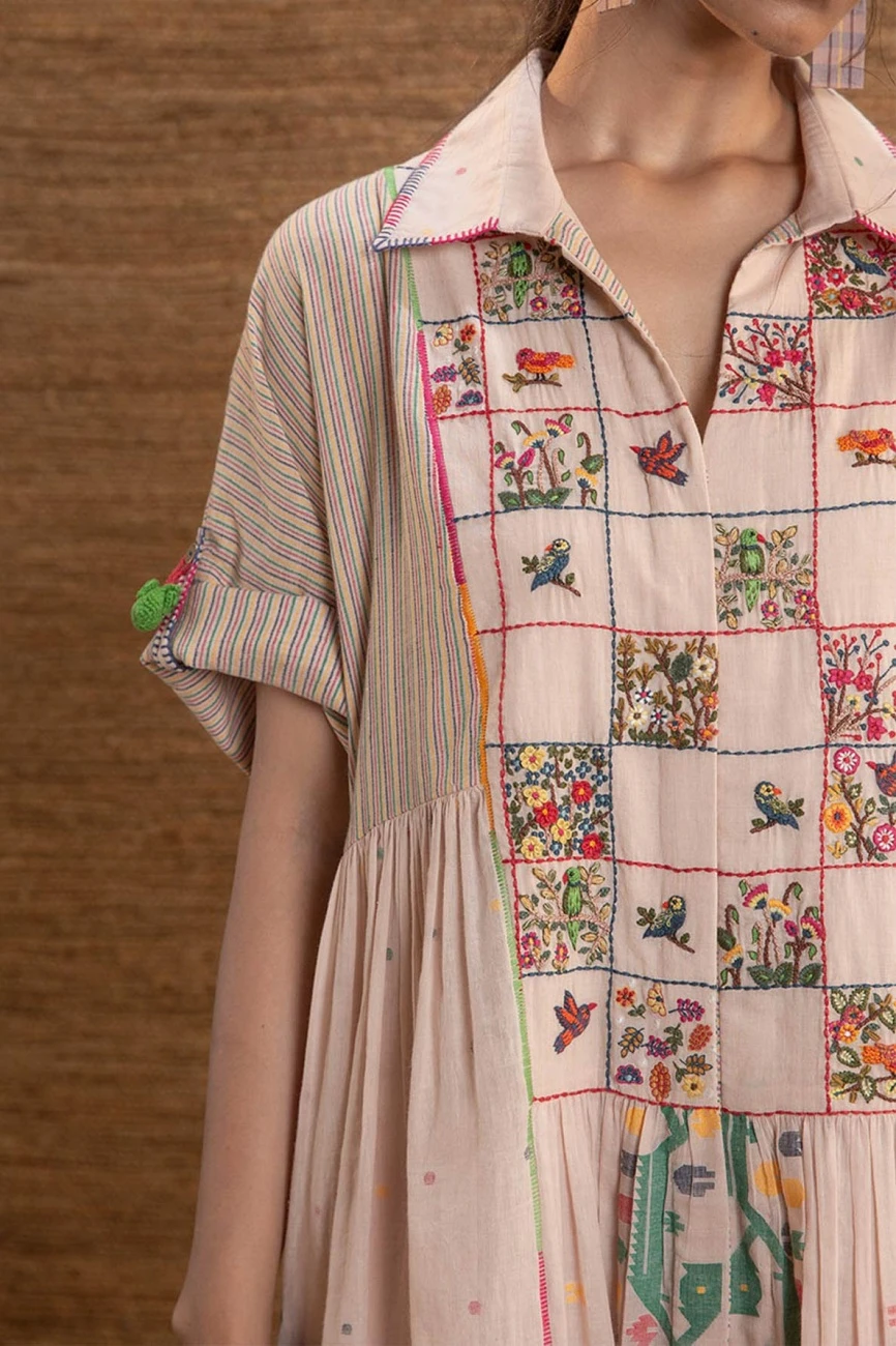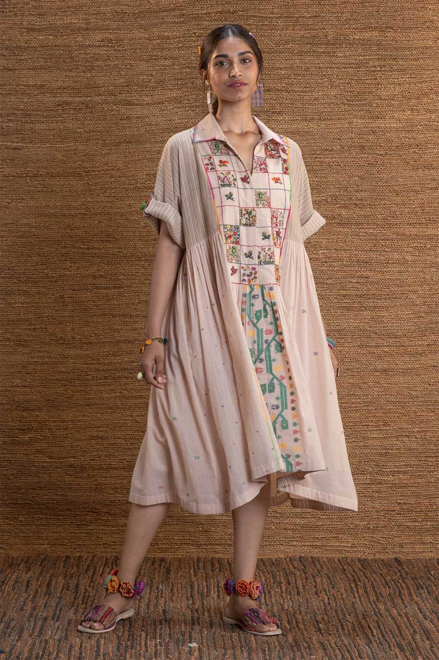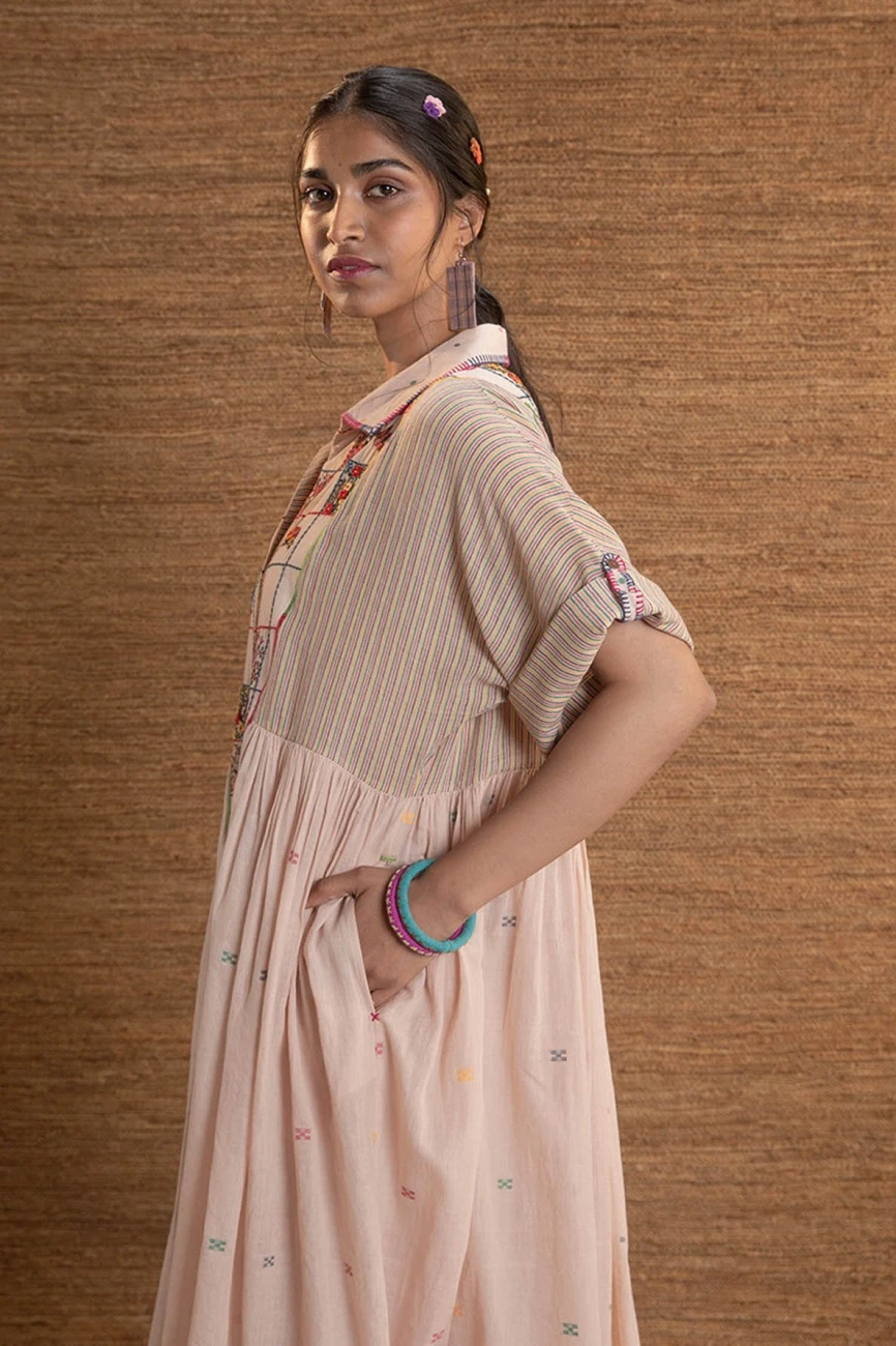 - Fabric-dress – fine handwoven jamdani muslin slip – mul cotton