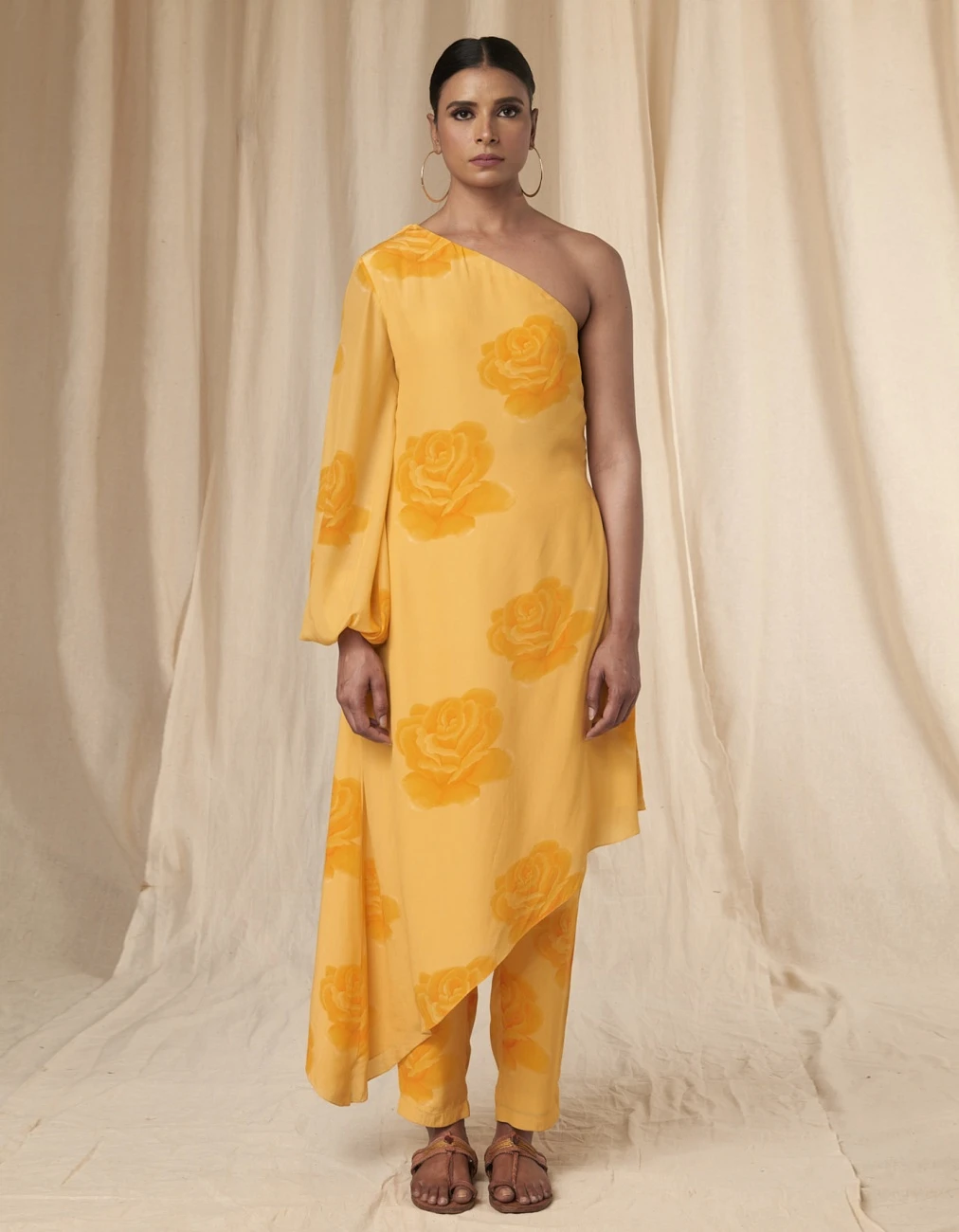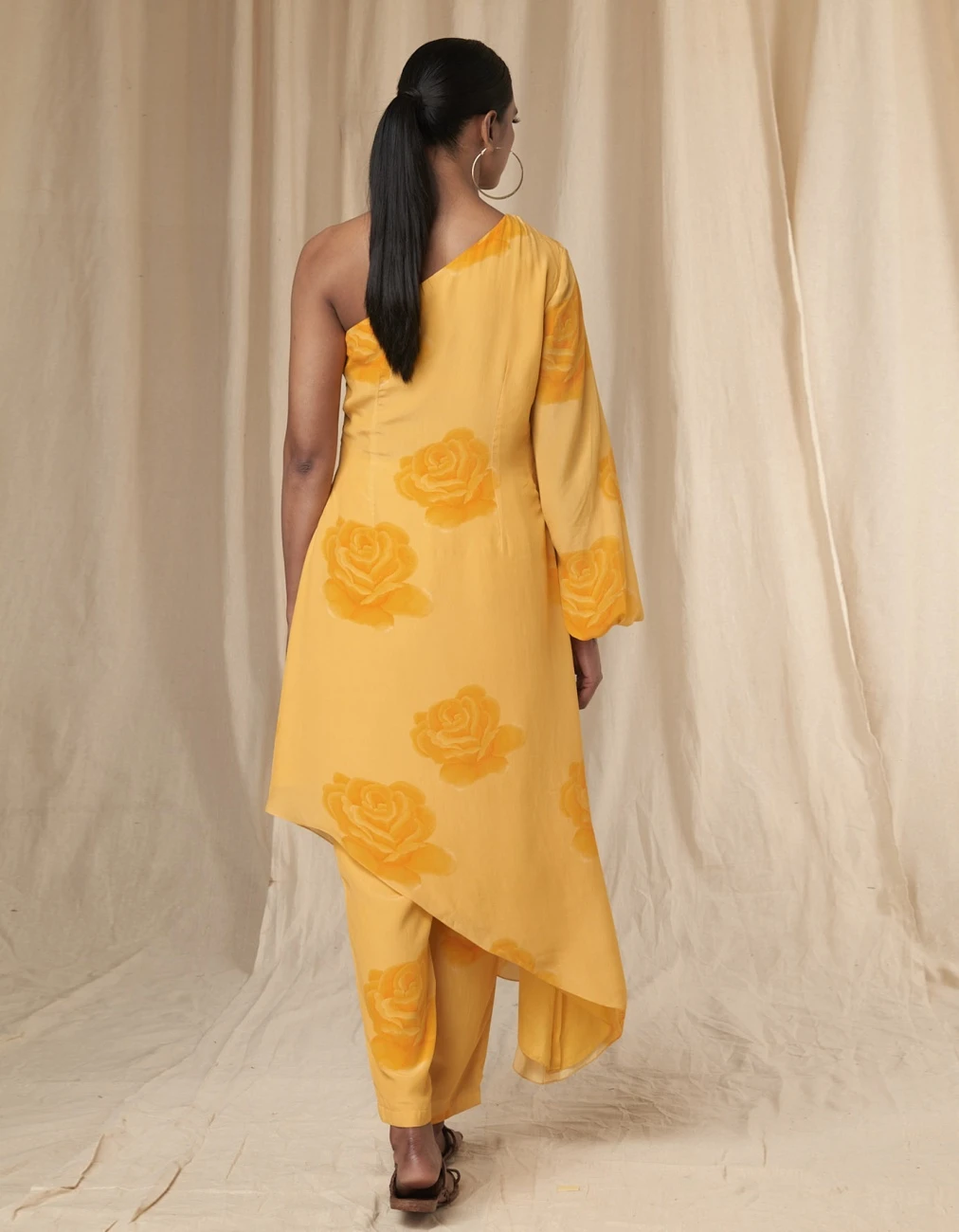 - Tanya pollen yellow rosy one shoulder kaftan dress set