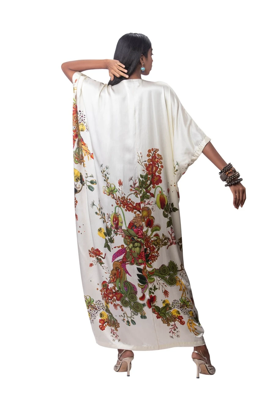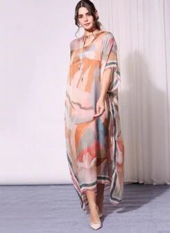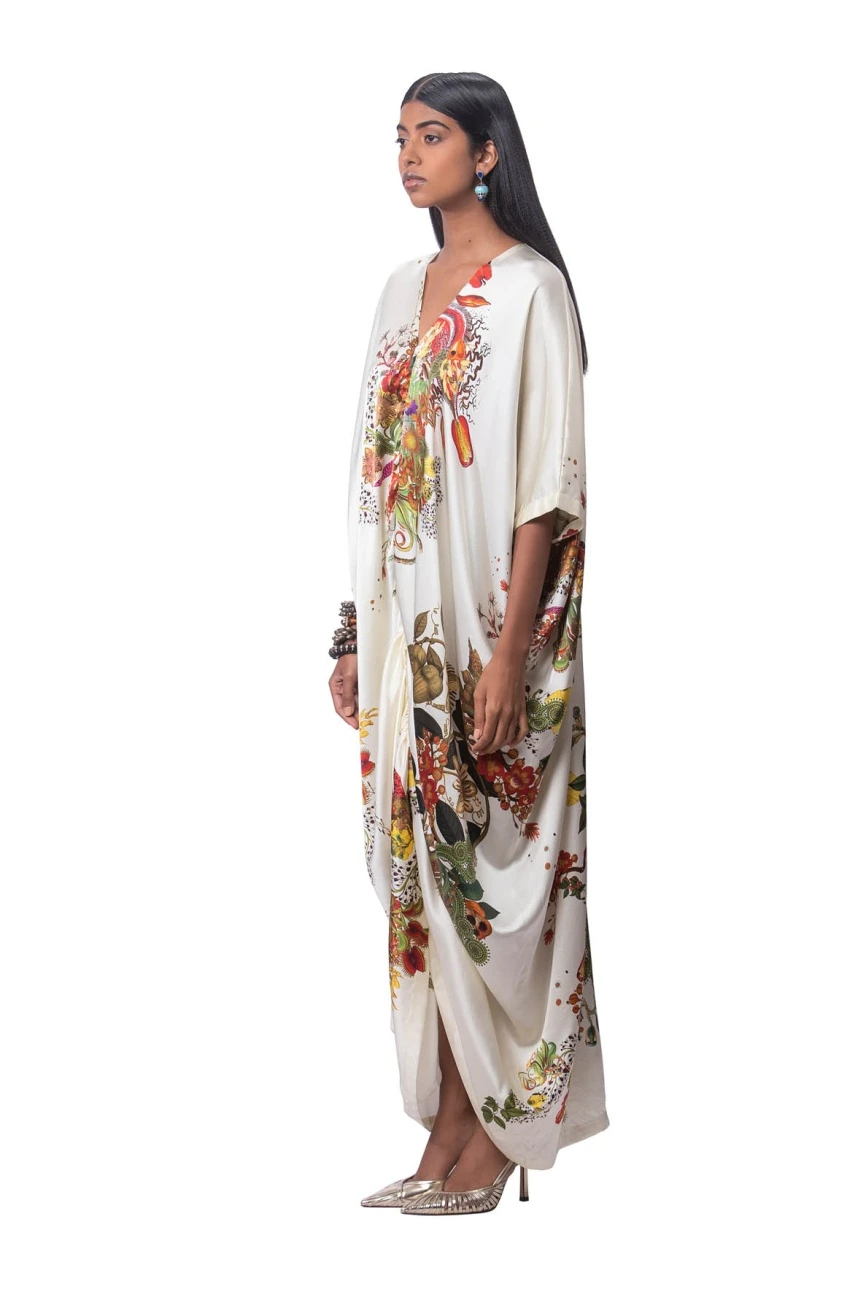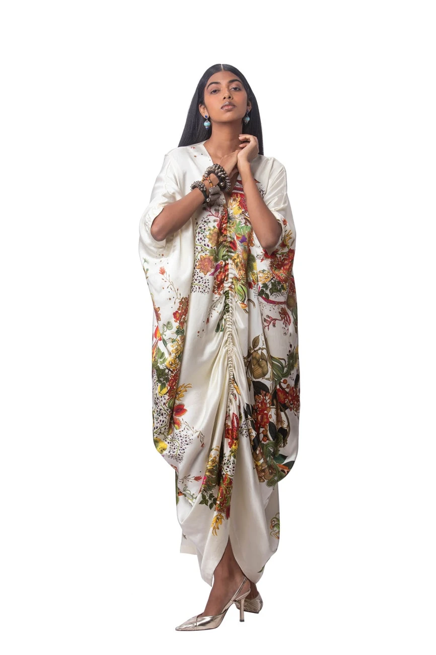 Printed Satin Gathered Kaftaan Dress