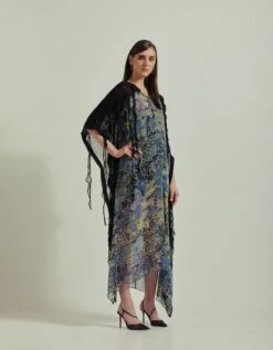- Floral kaftaan dress with laser cut applique work