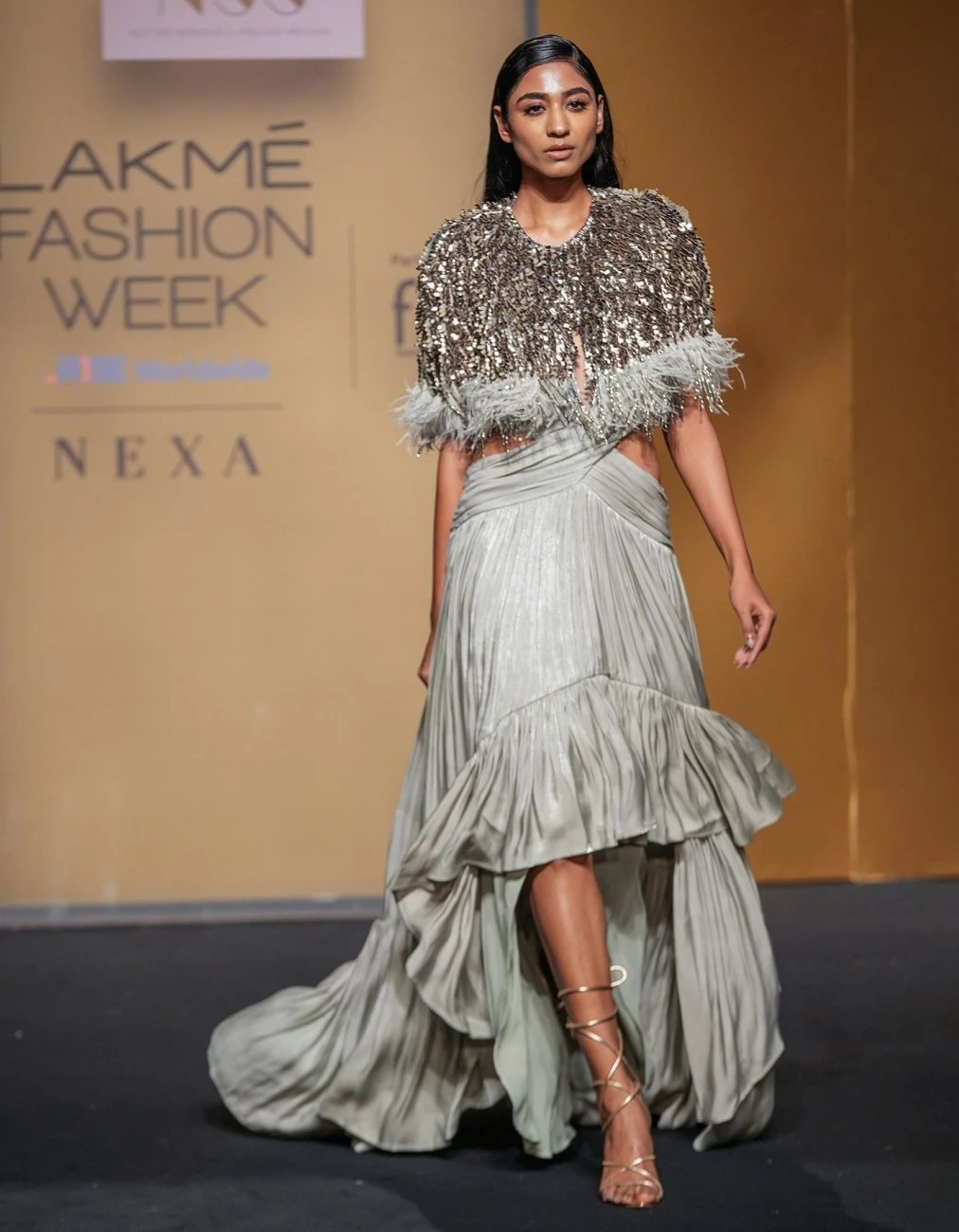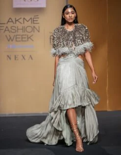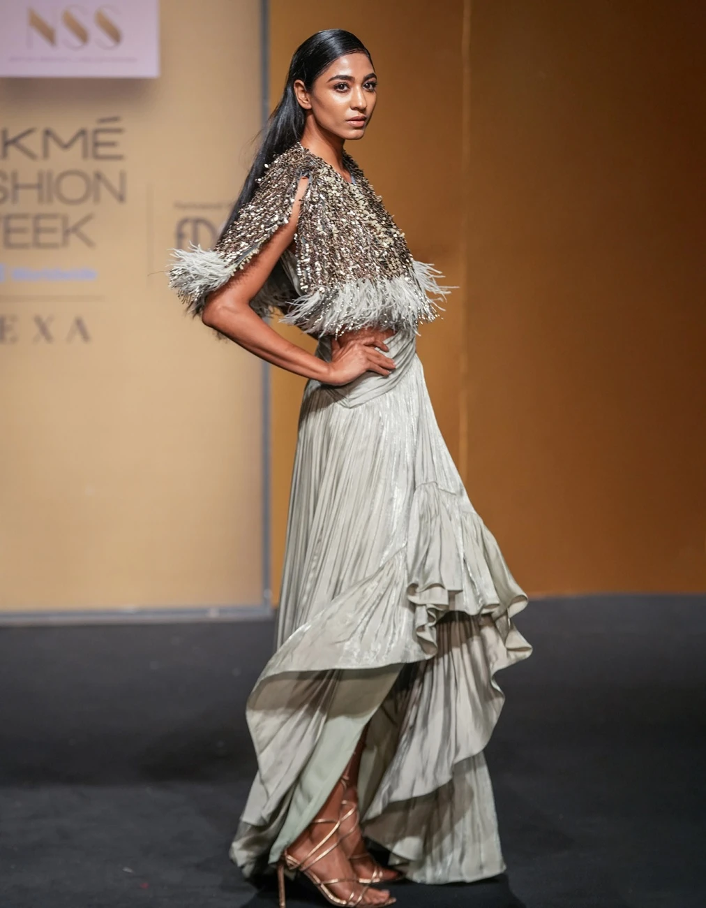- Fabric-dress- satin & georgette, cape- tulle & washed satin