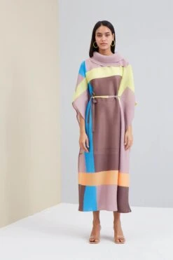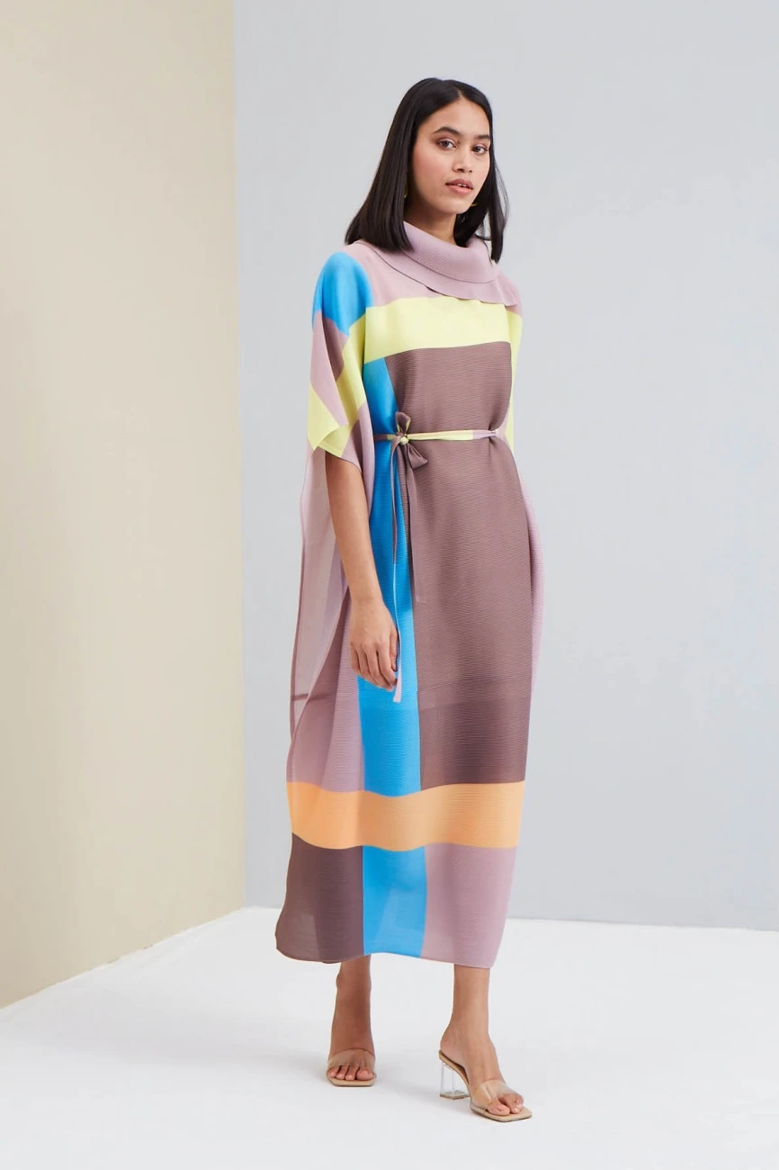 - An elevated kaftan style dress with turtle neck in abstract geometric printing in vivid colours