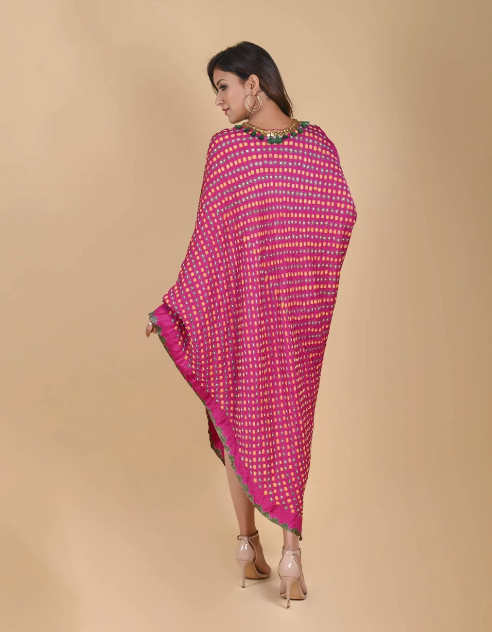 - Featuring an inverted triangle silhouette with tassel and coin details on the neckline