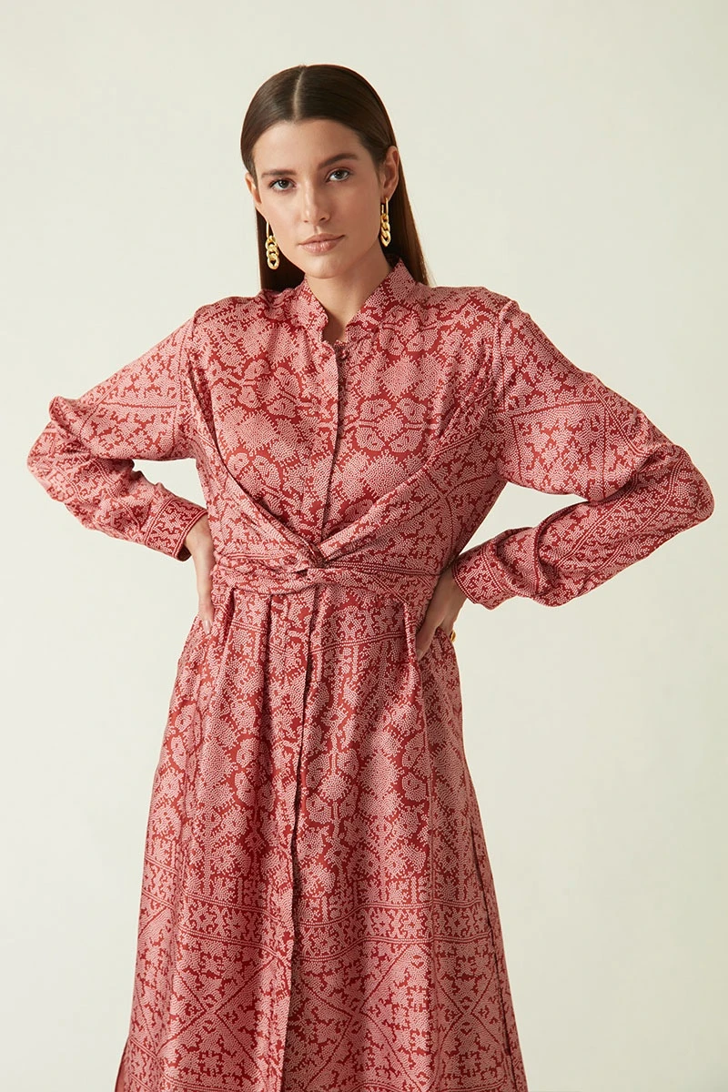 - Decorative cross-over front knott at waist bodice to create a draped effect