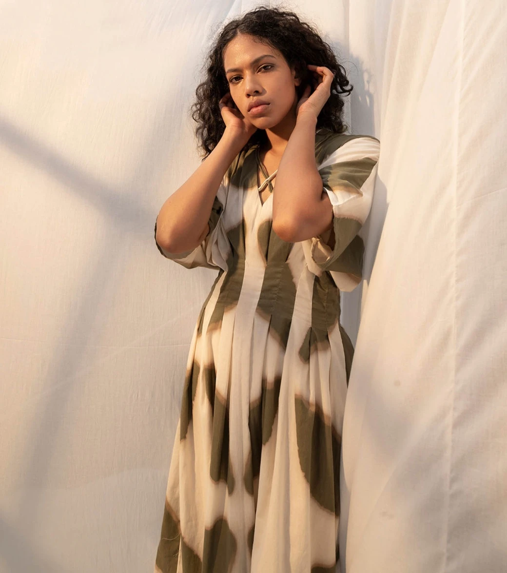 - Kaftan sleeves with elastic band at back and criss cross strap detailing at neck