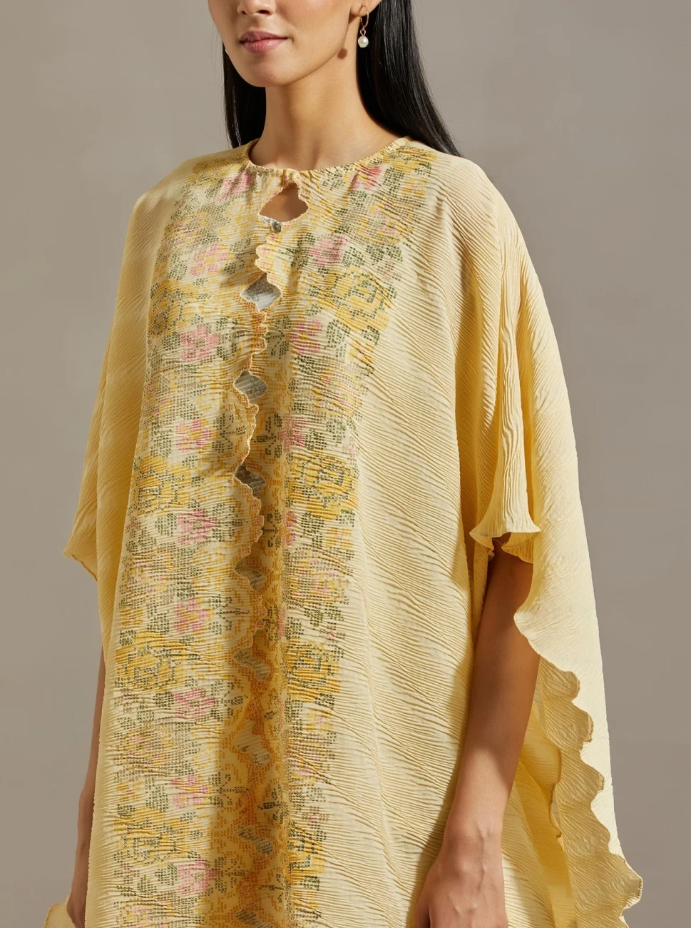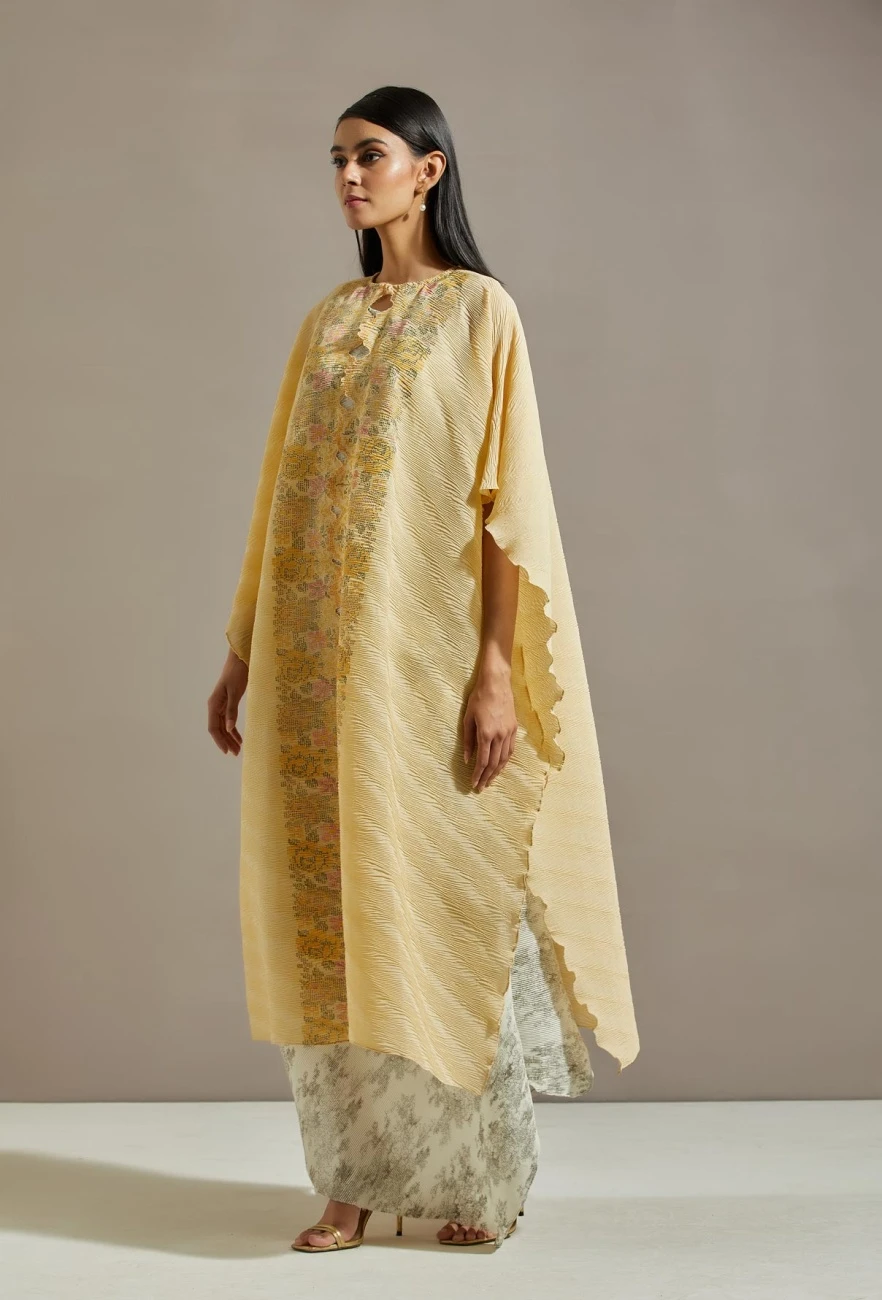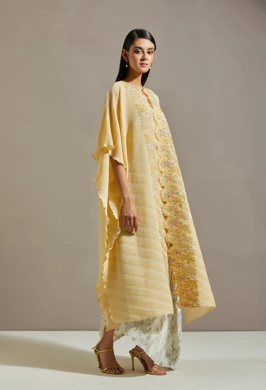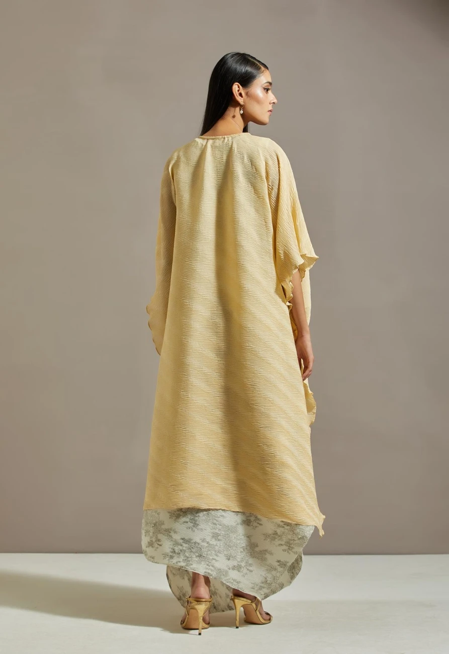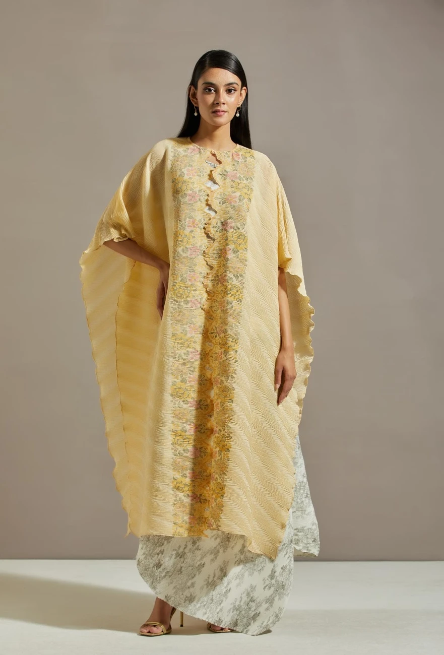 Salmon Pink Pleated Drape With Motif And Tassel Detail With Jersey Long Dress With Collar Detail